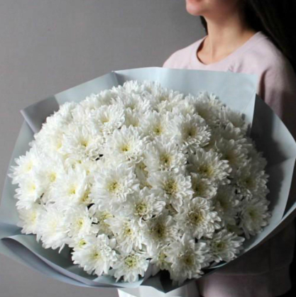 Большой букет из белой хризантемы Балтика. Количество хр-м можно поменять с помощью калькулятора.