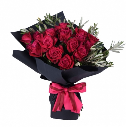 Красные розы с темной матовой бумагой выглядят очень эффектно!