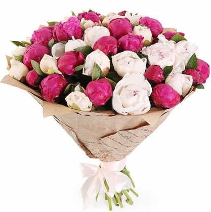 Букет белых и розовых пионов