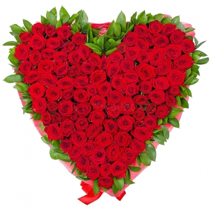 Композиция из 101 розы в виде сердца с доставкой в Пушкино