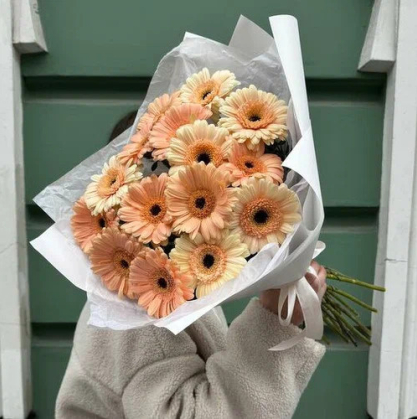 Нежный букет из мини гербер персикого цвета.