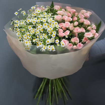 Ромашки и кустовые розы | Купить букет в Пушкино