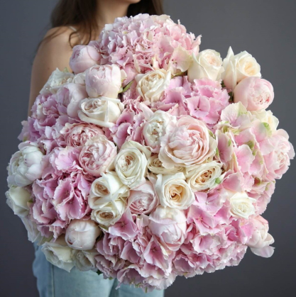 Букет из пионовидных роз и гортензий | Купить в Пушкино