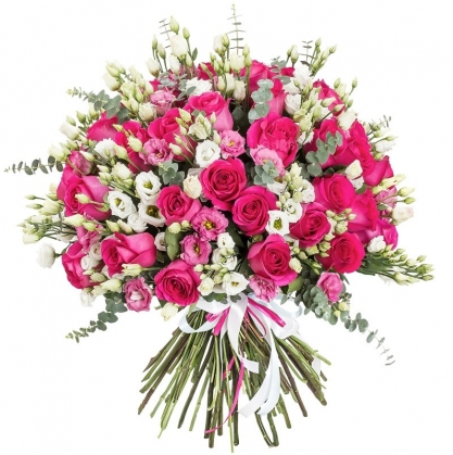 Композиция роз, эустомы, эвкалипта с доставкой в Пушкино
