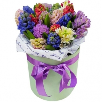 - Оформление: Мы предлагаем гиацинты как в классических букетах, так и в стильных композициях в шляпных коробках.