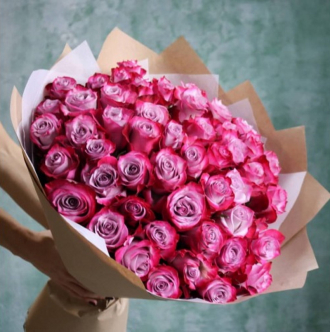 Конечно менее эффектный, но тоже шикарен букет 51 роза. Роскошные бутоны роз прекрасно смотрятся как сами по себе, так и в уникальной композиции, разработанной флористами.
