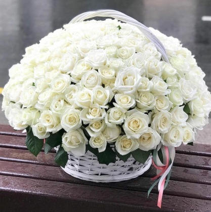 Корзина из 101 белой розы | Купить с доставкой в Пушкино