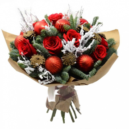 Новогодний букет из красных роз и нобилиса | Купить в Пушкино