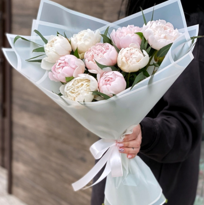 Букет 9 пионов в матовой пленке | Купить в Пушкино