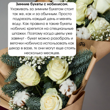 Одним из ключевых элементов букета на новый год являются елочные ветки (нобилис). Они придают композиции праздничный иррациональный вид, наполняя помещение ароматом хвои и создавая ассоциацию с настоящей елкой, на которой мы украшаем свои дома. Кроме того, в таких букетах могут использоваться яркие цветы и ягоды, которые отображают наше желание встретить праздник с радостью и оптимизмом. Красные розы символизируют любовь и исполнение желаний, а ягоды (гиперикум) олицетворяют изобилие в наступающем году.