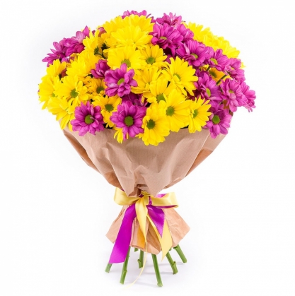 Букет из кустовых хризантем в крафт бумаге