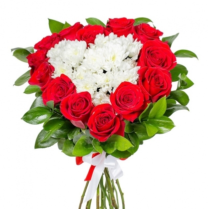Сердце из роз и хризантем | Фото и цена букета с доставкой в Пушкино