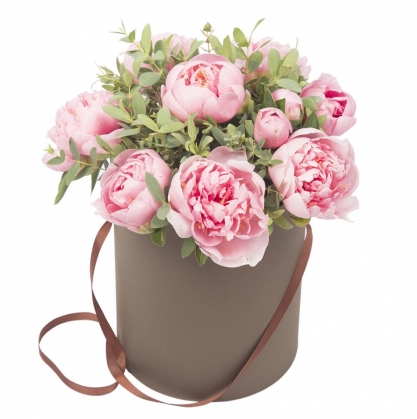 Коробочка пионов с добавлением эвкалипта