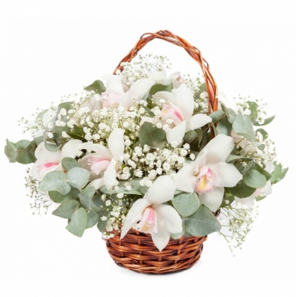 Корзина белых орхидей "Воздушный поцелуй" | Купить в Пушкино